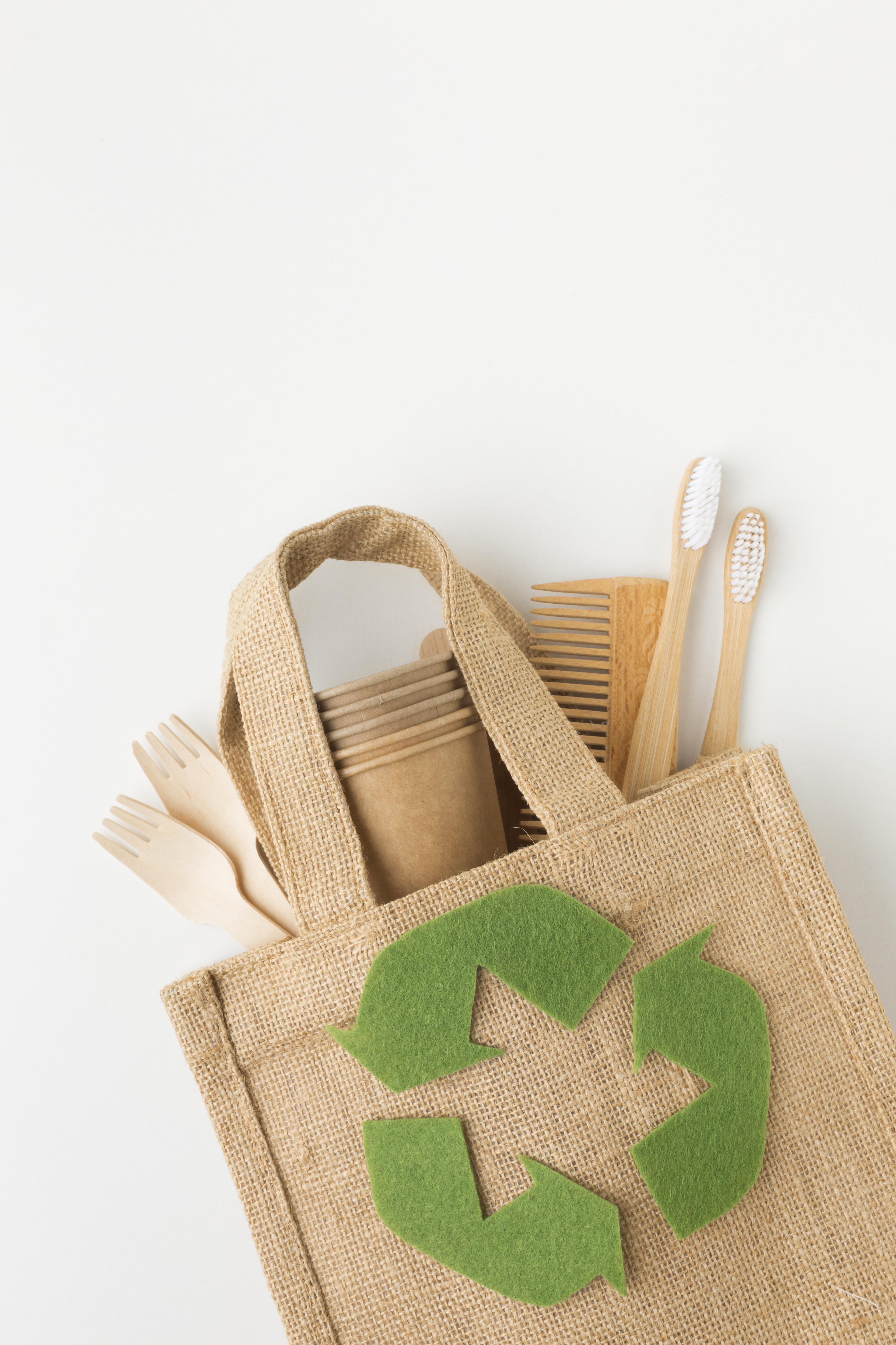 Materiais biodegradáveis e reutilizáveis.